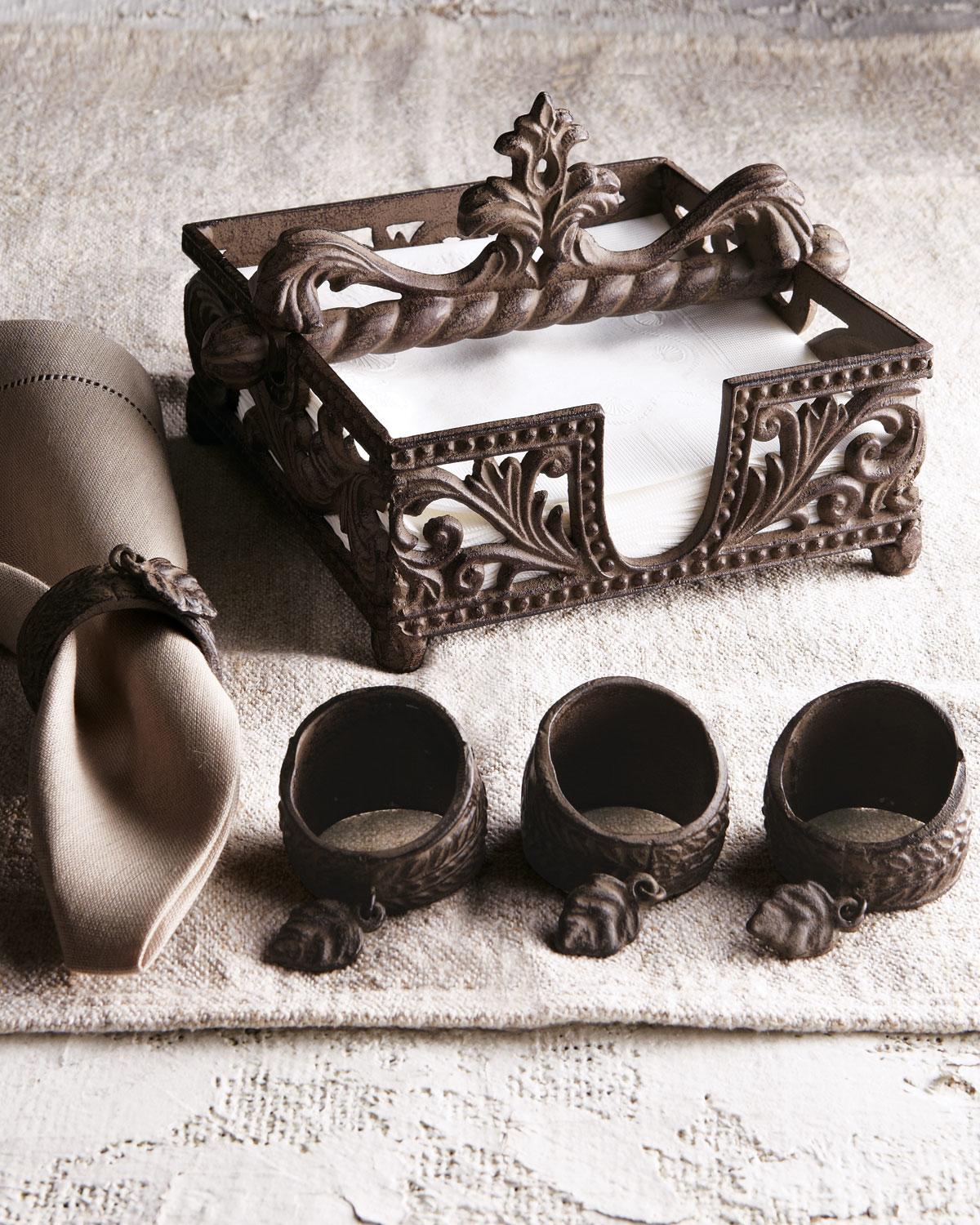 Dekorativ sæt servietringe i metal.